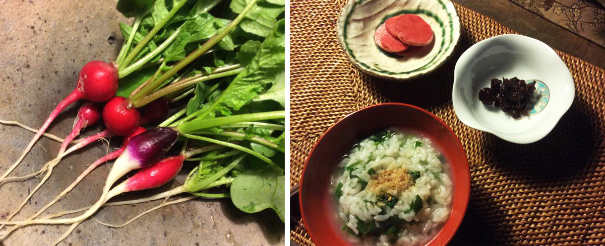 旬の食材を使用します。季節折々の食材を料理するなかで、人間の力を超えたところで働く大いなる働き(無量寿・無量光)を感得。