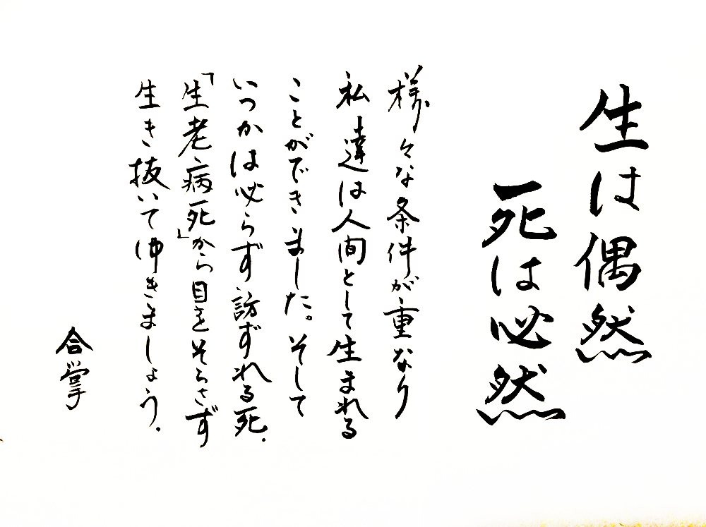 他人に迷惑をかけずに静かに死んでいきたいという思いは、人間の持ち続けている心の安らぎへの願いである。 『往生要集』石上善應 著 より |