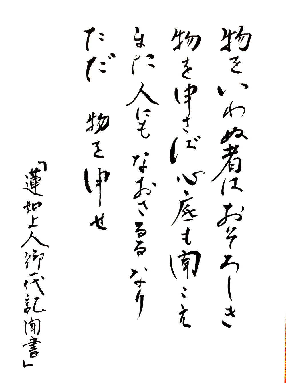 今我々の住んでいる世界には、偽物ばかりで本物に出遇えないという不幸があります。しかし、本物に出遇う為の苦労の末、出遇い得たときの喜びはひとしおなのです。有無を言わさぬ「真理」という本物の前には頭を下げざるを得ない。つまり「頭が下がる」のです。日常の中で「頭を下げる」事はあっても、「頭が下がる」という事は本当に少ないものです。 |